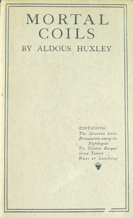 Mortal Coils is a collection of five short fictional pieces by Aldous Huxley, comprising three short stories, a novelette, and a play. The works explore themes of love, disillusionment, and human folly, showcasing Huxley's early satirical style.