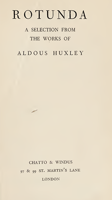 | Publication date | 1932 | A curated anthology of excerpts from Huxley’s works, including passages from his novels, essays, and poems. This selection highlights the diversity of Huxley’s literary output, offering readers a representative overview of his themes, style, and intellectual interests up to that point in his career. | ||