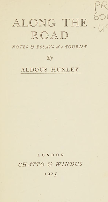 | Publication date | 1925 | A collection of travel essays reflecting Huxley’s observations and thoughts during his journeys across Europe. Blending travel writing with cultural critique, Huxley offers insights into art, architecture, society, and human nature as encountered on the road.